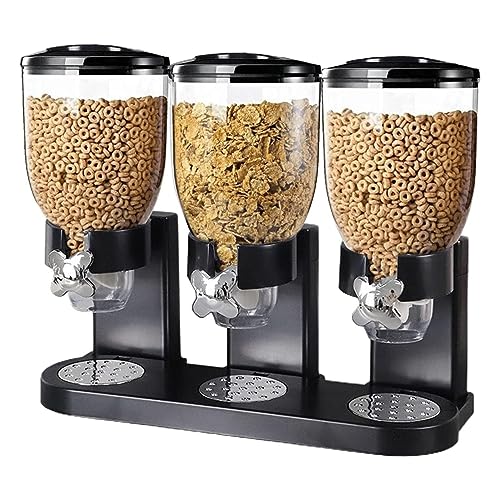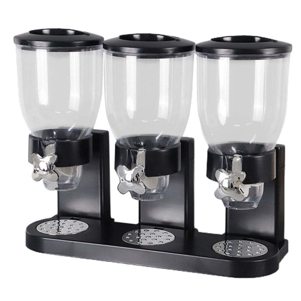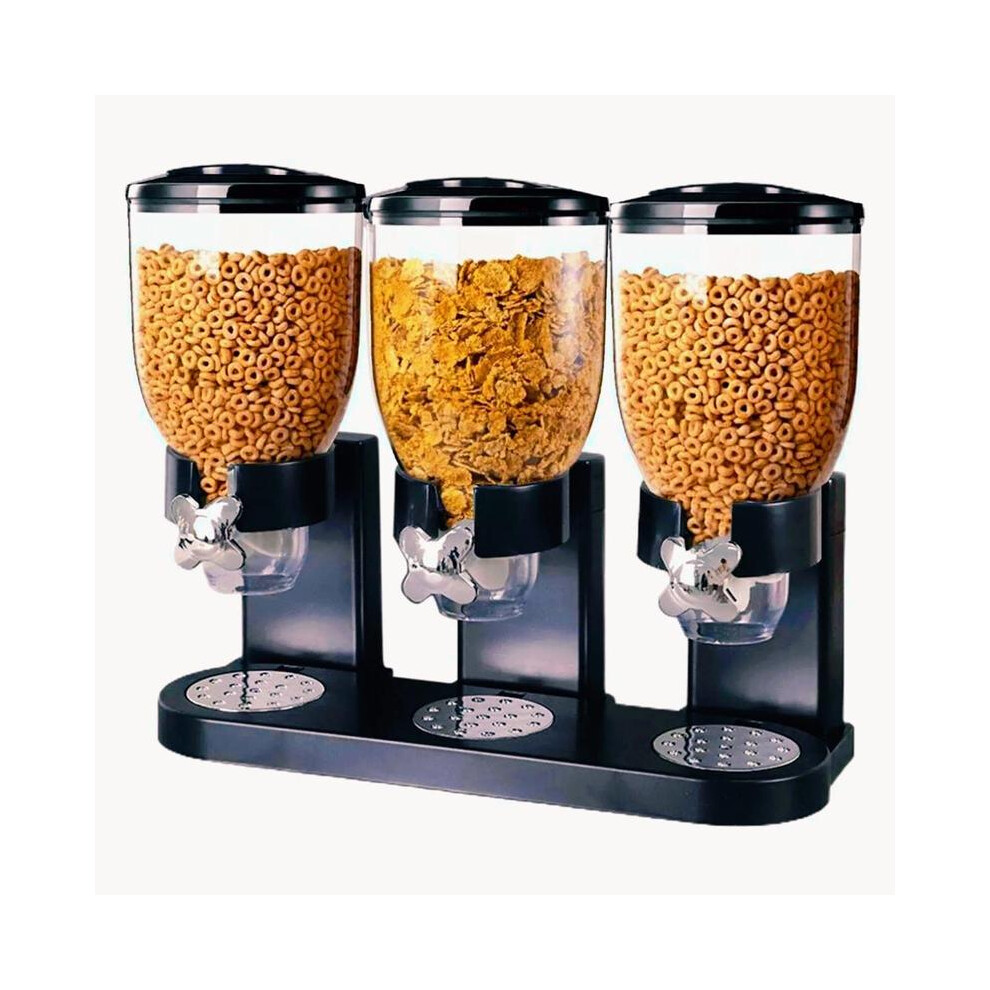(Black (Triple)) Triple Cereal Dispenser Classic Dry Food Storage Container, Dry Food Dispenser Control Storage Container, Great For Cornflakes, Candy