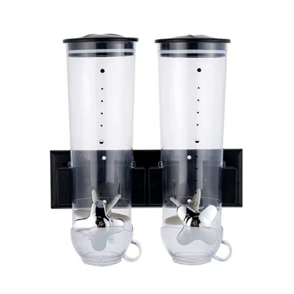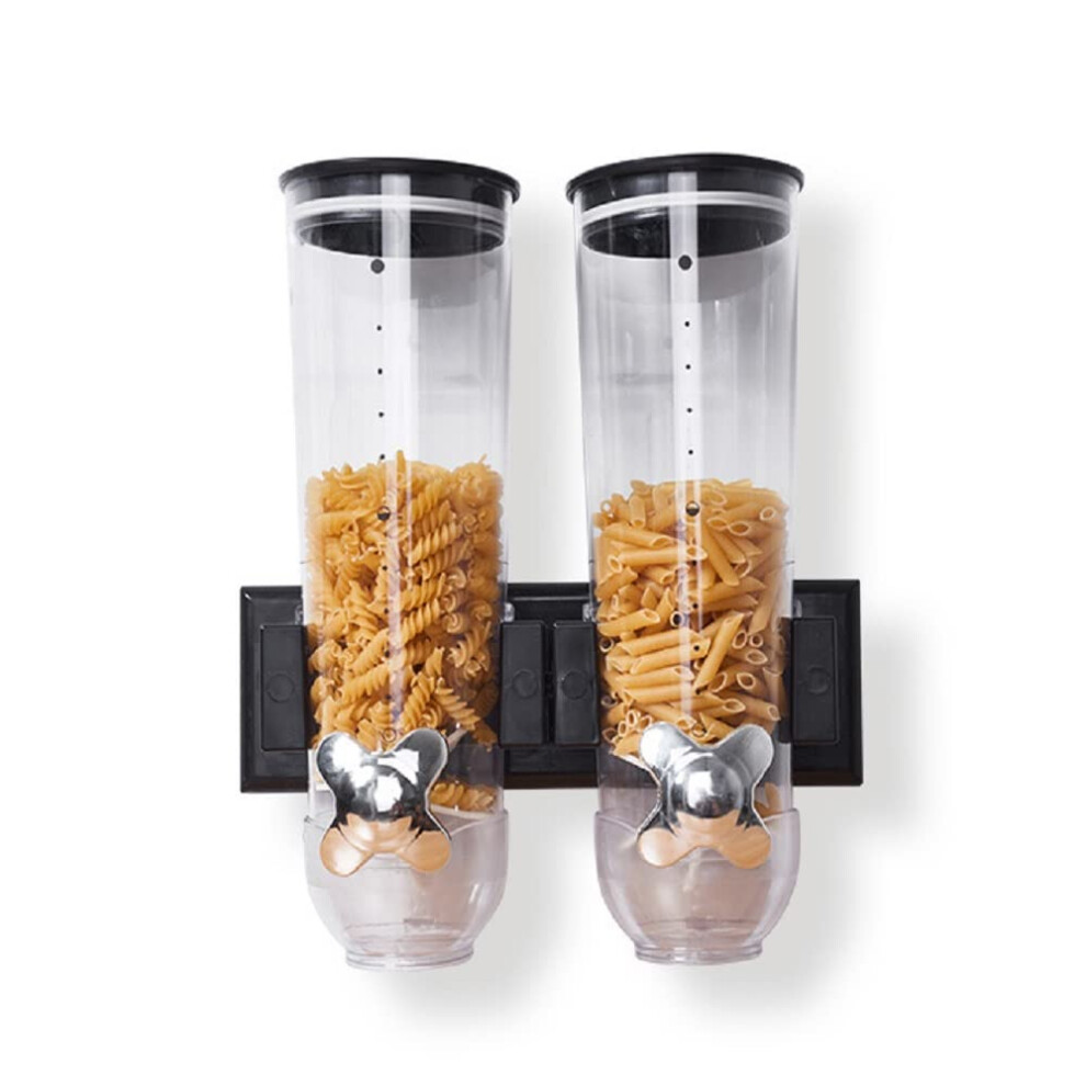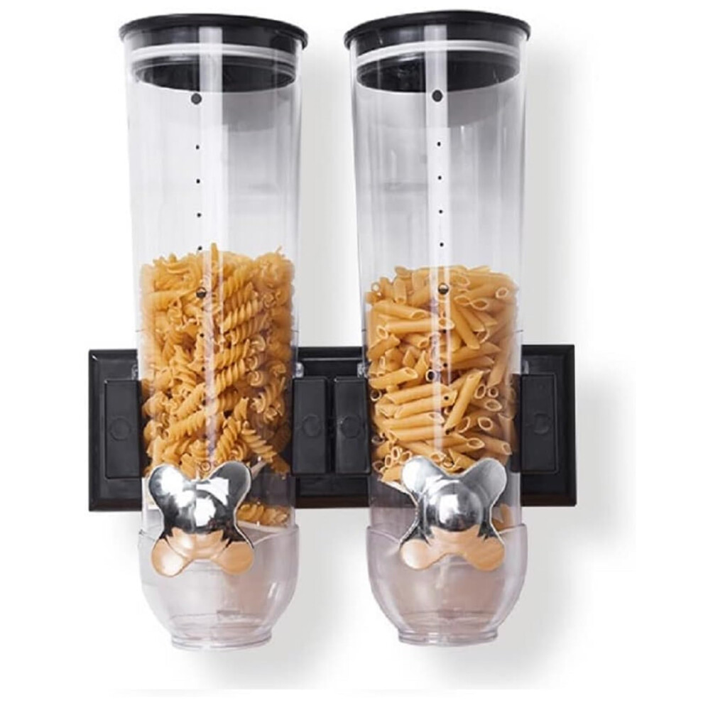 Cereal Dispenser, Wall Mounted Cereal Dispenser Double Dry Food Dispenser Kitchen Dispenser for Cereal Cornflakes Sweets (Black) Schwarz