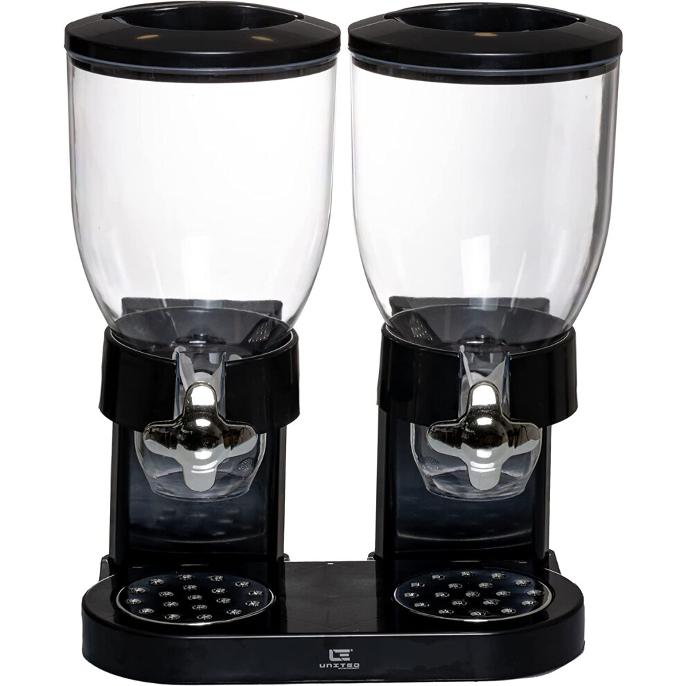 Double Cereal Dispenser Classic Dry Food Double Canister, Dry Food Dispenser Control Storage Container, Great for Cornflakes, candy, nuts, beans, granola - Kitchen Storage Dispenser, Black