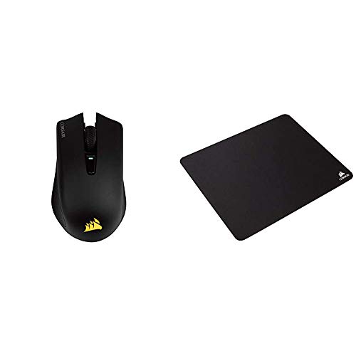 Corsair Harpoon Wireless RGB Wireless Rechargeable Optical Gaming Mouse - Black & MM100 Medium Cloth Surface Mousepad (Glide-Optimised Textile Surface, Anti-Slip Base) - Black