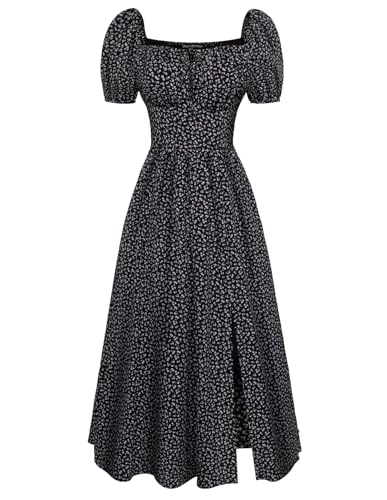 IBTOM CASTLE Women's Floral Corset Dress Square Neck Spaghetti Strap Summer Boho Sundress Casual Flowy Slit Bustier Dresses X-Black M