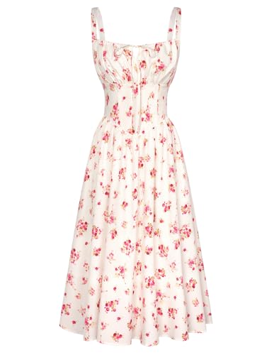 IBTOM CASTLE Women's Floral Corset Dress Square Neck Spaghetti Strap Summer Boho Sundress Casual Flowy Slit Bustier Dresses White-Rose XS