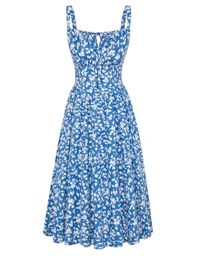 SCARLET DARKNESS Women Summer Dresses Casual Floral Beach Sundress A-Line Sleeveless Spaghetti Strap Victorian Milkmaid Corset Dress Blue M