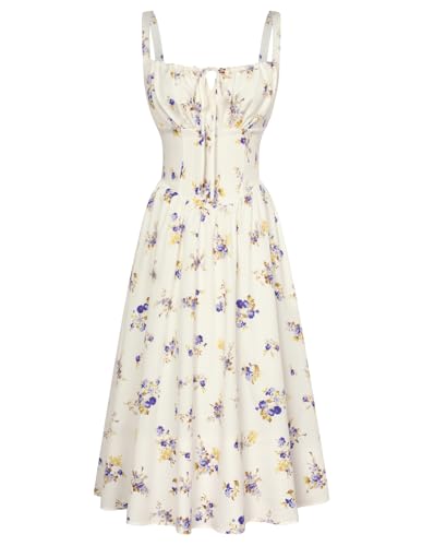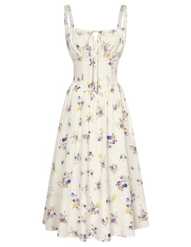 SCARLET DARKNESS Women Summer Dresses Casual Floral Beach Sundress A-Line Sleeveless Spaghetti Strap Victorian Milkmaid Corset Dress White Yellow S