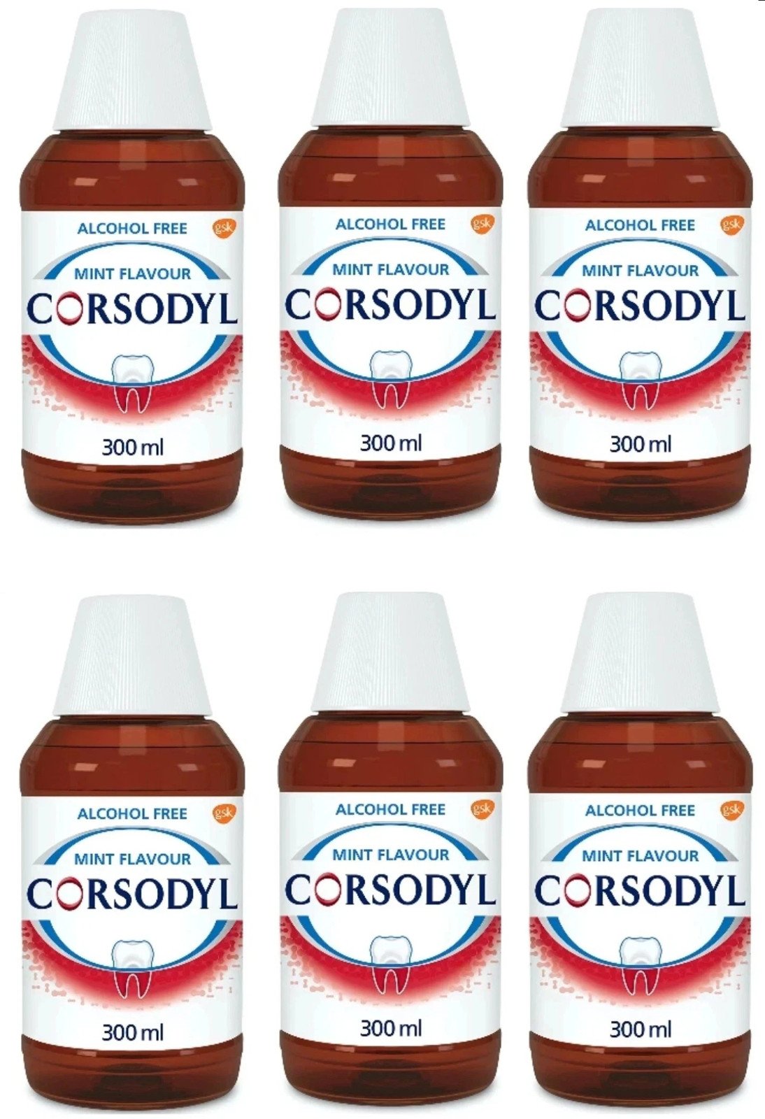 Corsodyl Antibacterial Mouthwash Alcohol Free 300ml x 6