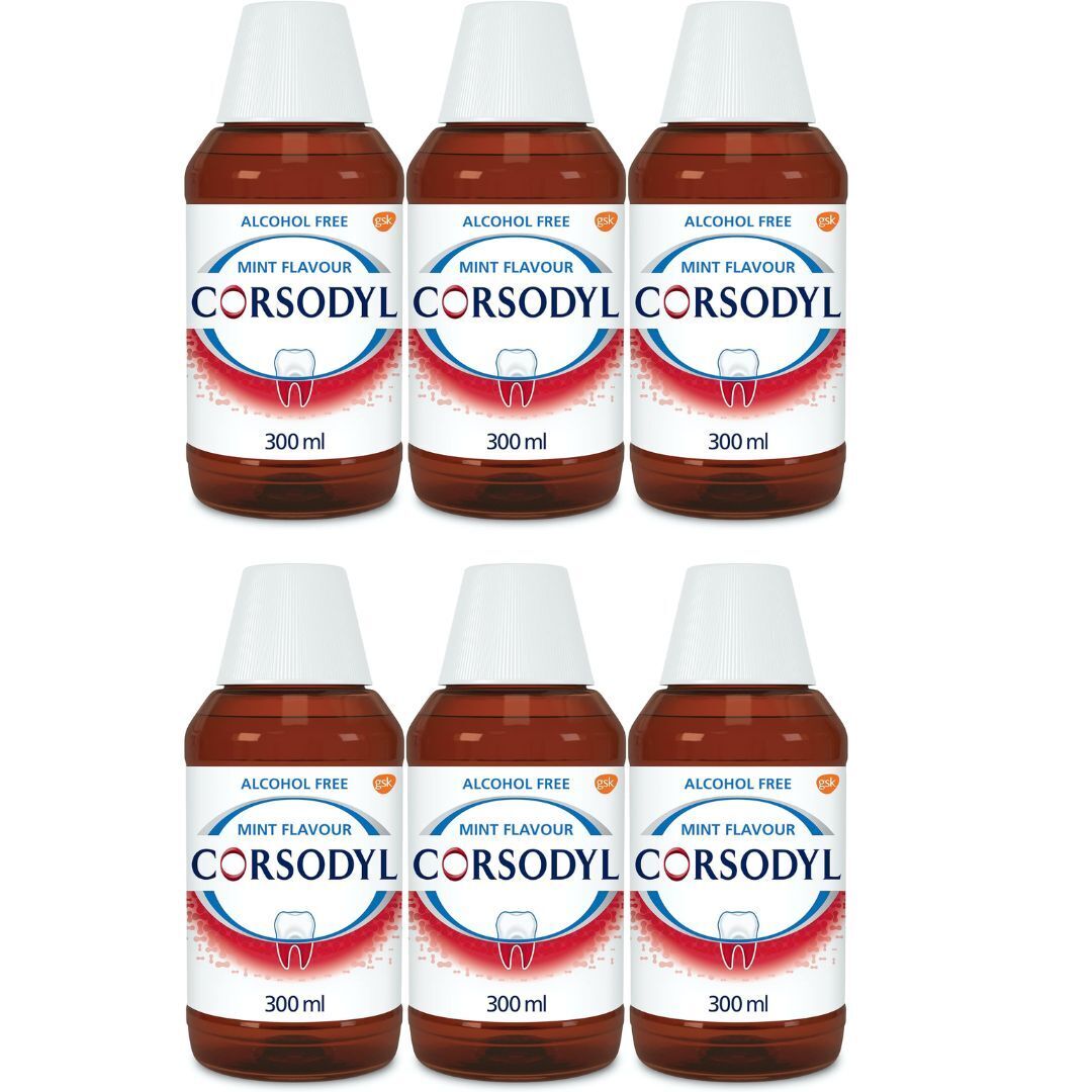 CORSODYL Mouthwash Alcolhol Free Mint Flavour (6 x 300ml) BBE 30/09/2026