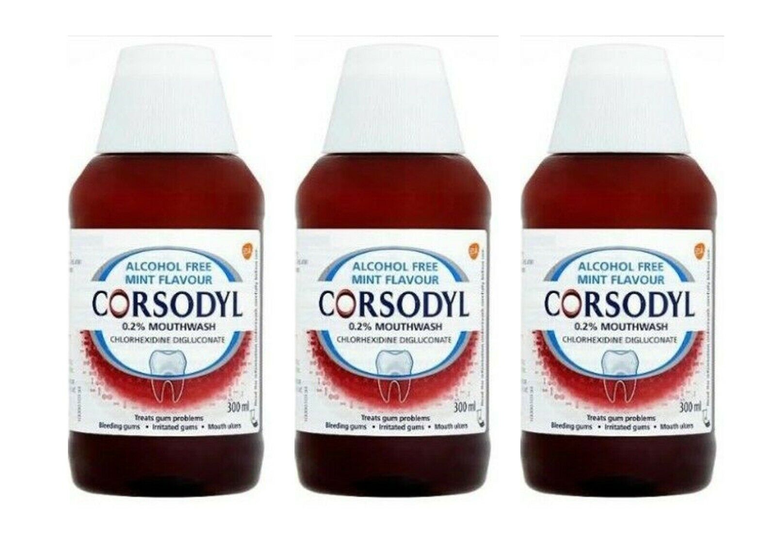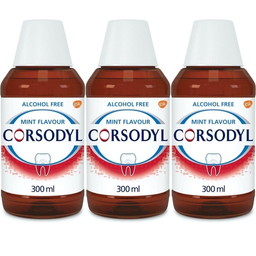 3x Corsodyl Mouthwash Gum Disease Treatment Mouthwash Alcohol Free 300ml Mint