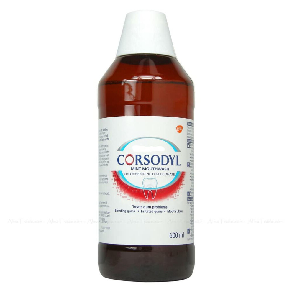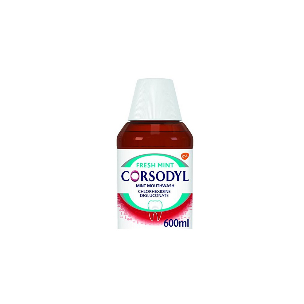 Corsodyl Mint Flavour Mouthwash, Specially Designed Benefits for Stop and Prevent Bleeding Gums, Irritated Gums, Mouth Ulcers, 600