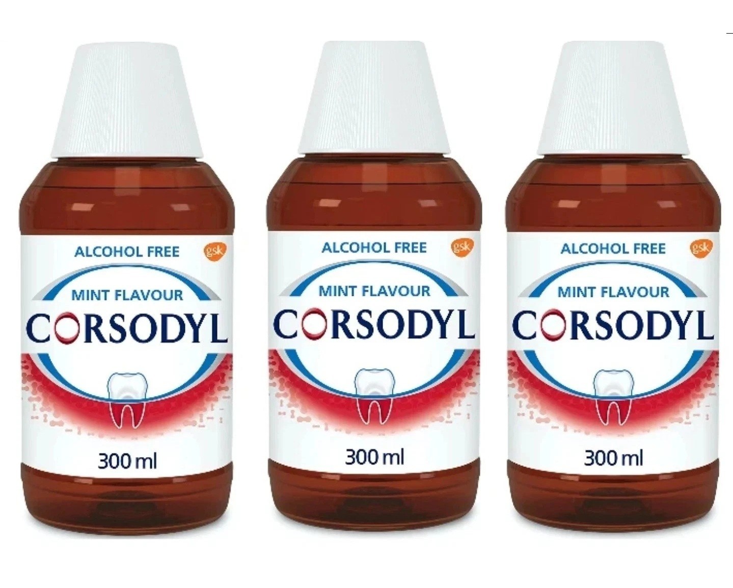 3 x Corsodyl Antibacterial Mouthwash Alcohol Free 300ml