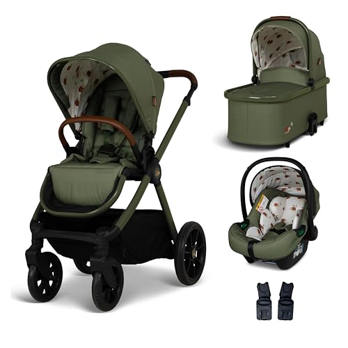 COSATTO Giggle 4 Travel System - 3 in 1 Travel System, 0-25kg Approx. 4 Years Old, Compact Fold, Pram, Pushchair, Carrycot, Seat Unit, i-Size Group 0+ Infant Carrier Car Seat & Raincover (Hoglet)