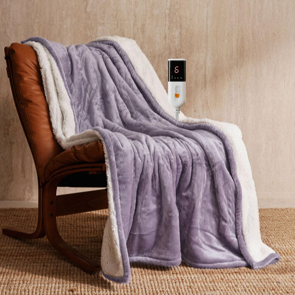 JET'S HOME Electric Blanket 130x160cm - Heated Blanket 6 Heat Settings Digital Controller Adjustable Timer up to 10 Hours - Heated Throw Machine Washable Overheat Protection (Purple)