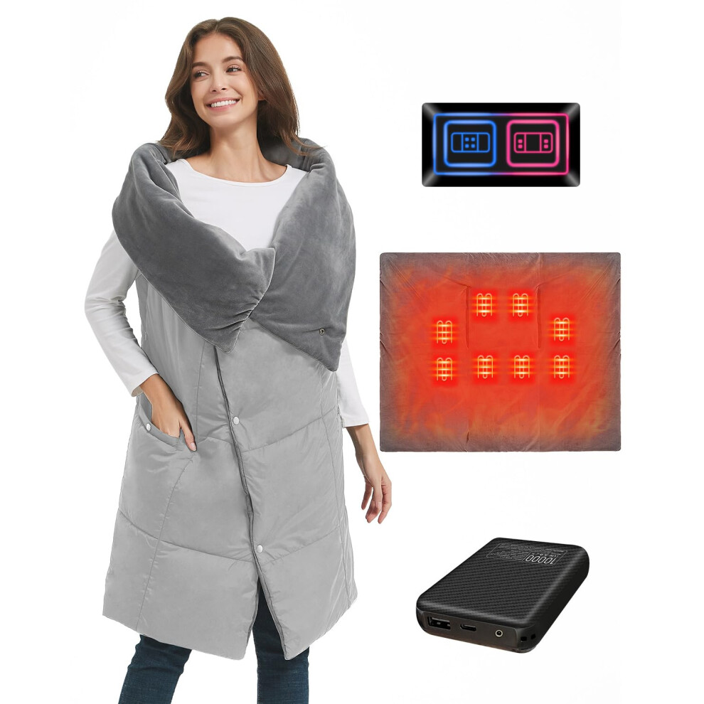 Heated Blanket for Men and Women, Wearable Heated Shawl Electric Heated Throw Blanket with DC Battery for Home, Office, Travel, Hiking, Gray