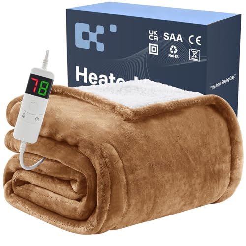 Cosi Home® Luxury Heated Throw - Electric Blanket - Extra Large Heated Blanket, Machine Washable Fleece & Sherpa with Digital Remote, Timer and 10 Heat Settings…