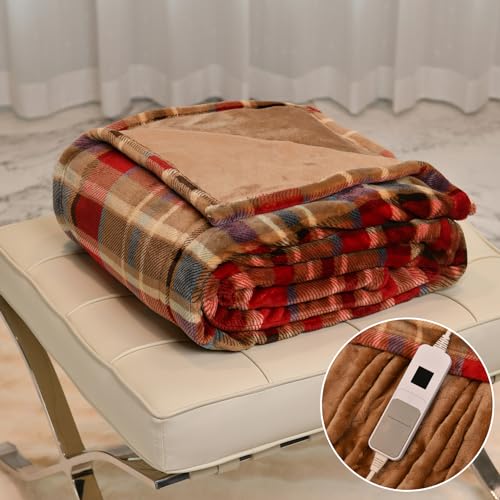 BOMOVA Electric Heated Blanket Single Throw (130x160cm,Brown)-Flannels Fleece Winter Warm Blanket,10-Level Heating & 5 Auto Timer,Cozy Sofa Throw for Home Office,Xmas House Warming New Home Gifts