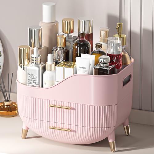 Makeup Organizer for Vanity, Large Capacity Skincare Cosmetic Organizer Countertop with 2 Drawers, Cosmetic Display Cases Makeup Storage Box for Bedroom, Bathroom, Ideal Gifts for Women(Pink)