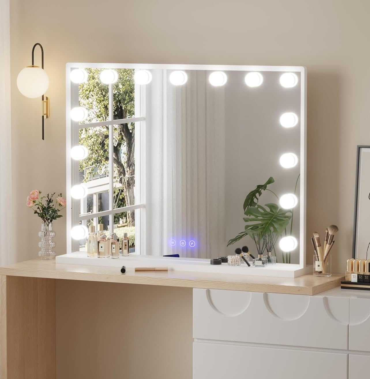 Hollywood Vanity Makeup Cosmetic Mirror with Lights 15 Dimmable LED Bulbs