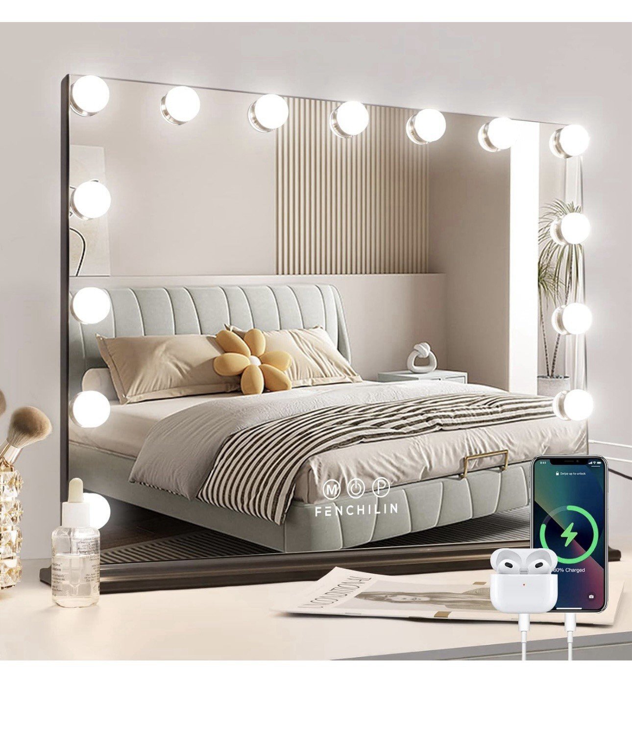FENCHILIN Hollywood Vanity Cosmetic Mirror For Makeup with Lights, Type-C and U