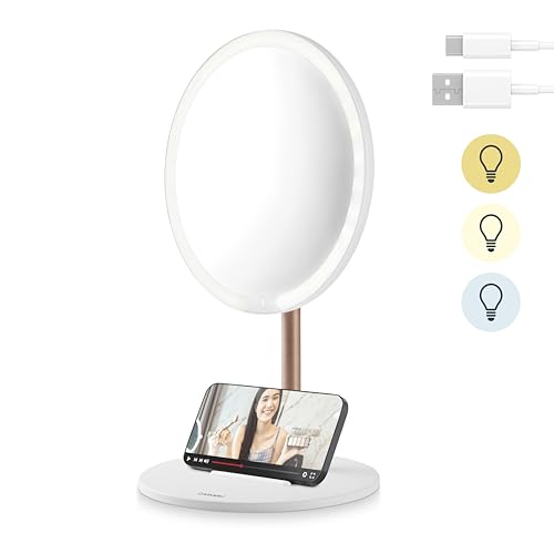 WEILY 10X/1X Magnifying Makeup Mirror with Light, Double Sided Tabletop Portable Vanity Mirror, 3 Color Adjustable Lights, Cosmetic Mirror with Lights for Makeup/Travel