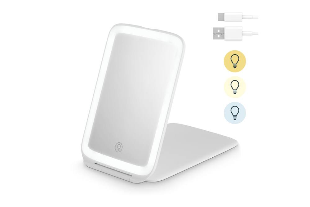 Tower Rechargeable Travel Cosmetic Mirror, LED Lights, White C85045WHT