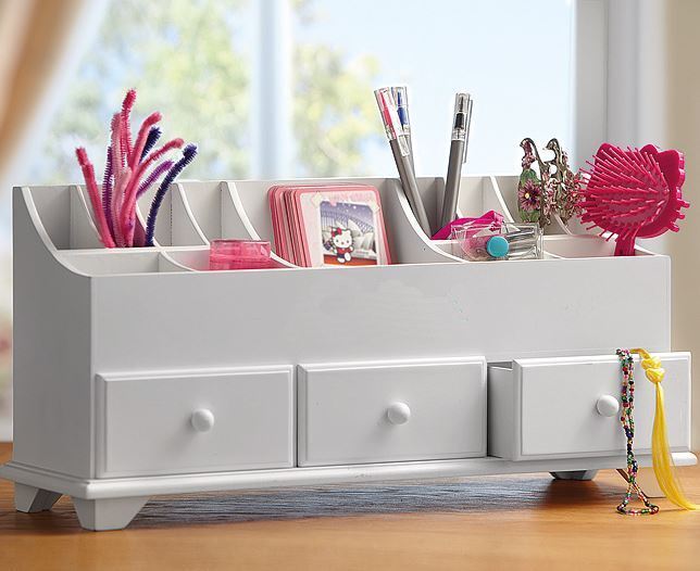 Multi-Purpose Wooden Bedroom Desk Cosmetic Drawers Organiser Caddy Pen Holder