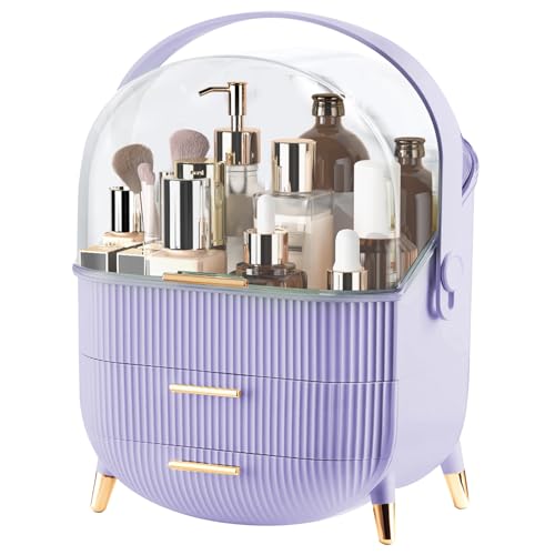 Makeup Organiser Storage, Skincare Organiser Drawers Beauty Holder Cosmetic Organisers for Bathroom, DressingTable Organiser Dustproof Waterproof (Light Purple)