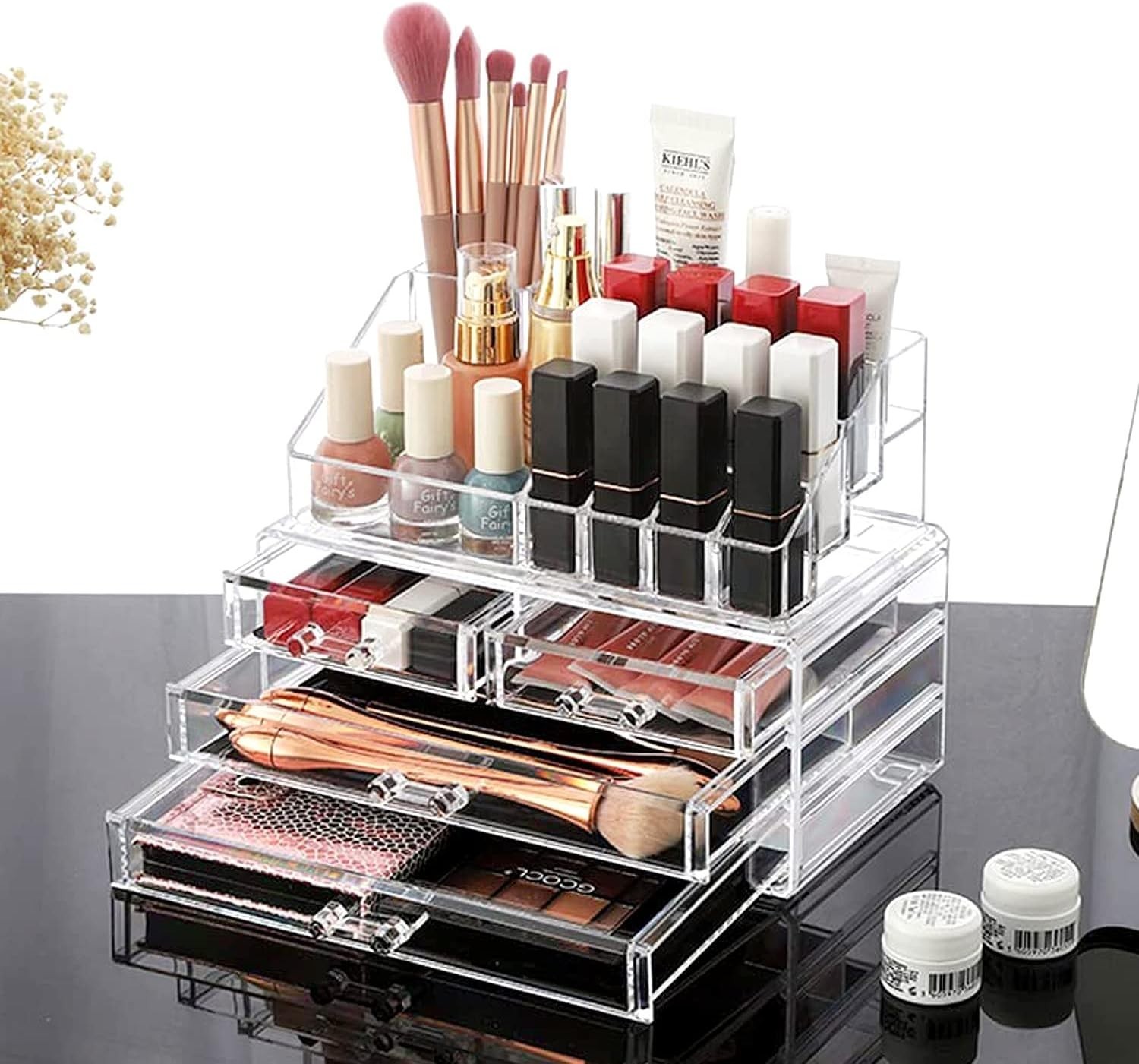 Cosmetic Organiser 4 Drawers Clear Acrylic Jewellery Box Makeup Storage Case New