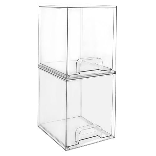 Youngever 2 Pack Stackable Plastic Organiser Drawers, Clear Cosmetic Organizers, Makeup Organiser Drawers