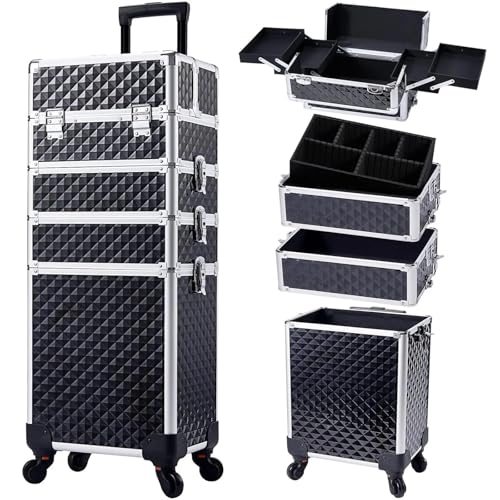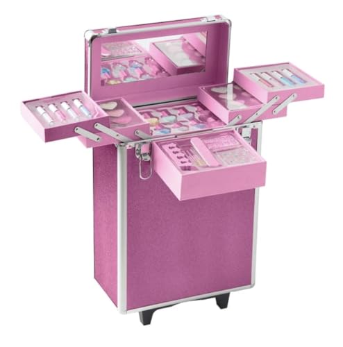 Trolley Cosmetic Bag Beauty Luggage with Wheels Makeup Nail Box Professional Case Rose Gold Suitcase
