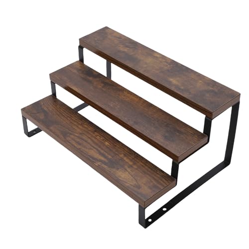 Sorandy Wood Display Stand, 3 Tier Rustic Shelf with Sturdy Iron Legs and Vintage Wood Grain for Perfume Cosmetics Skincare Storage, Wooden Display for Living Room Bathroom (3 Tier)