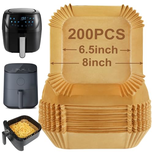 YQL 200pcs Square Air Fryer Liners Disposable, 6.5inch Non Stick Parchment Paper for Airfryer 3.5L-6L, Air Fryer Accessories for Cosori/Ninja ON400UK/AF140UK/SL300UK/Philips/Tower/Russell Hobbs