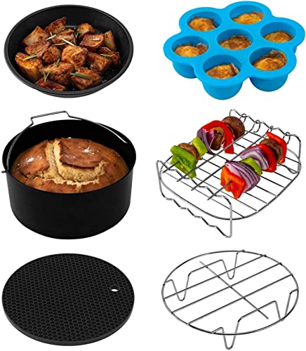 COSORI Air Fryer Accessories Set, Fit All of Brands 3.5 L, Pack of 6 Including Cake Pan/Pizza Pan/Metal Holder/Multi-Purpose Rack with Skewers/Silicone Mat/Egg Bites Mold with Lid