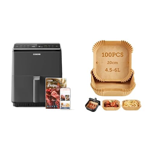 COSORI Air Fryer Liners,100 PCS Unbleached Non-Stick Square Disposable Airfryer Paper Liner, 6.5 inch for 3 to 4.5L Basket, Accessories for Air Fryer, Oven, Microwave, Oil and Water Proof