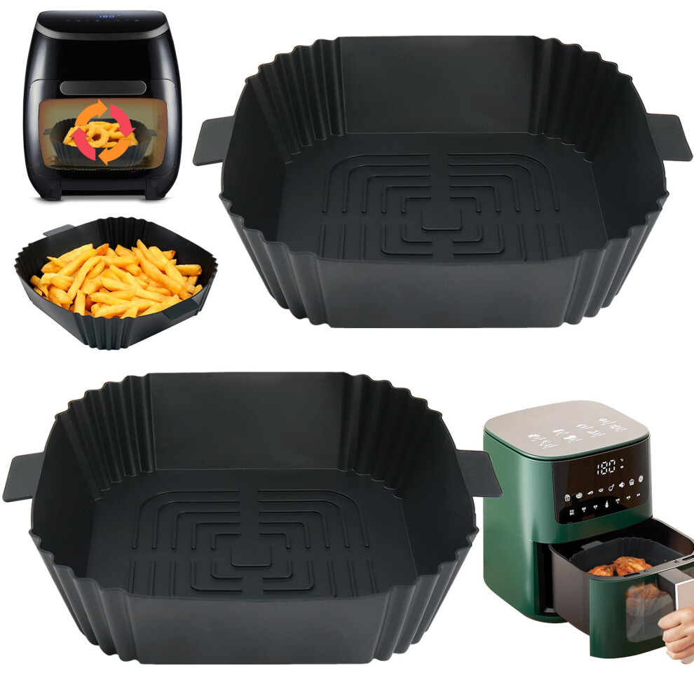 Air Fryer Liners-Square Silicone Air Fryer Liner Reusable,2pcs Air Fryer Silicone Liners Accessories Airfryer Liner Non-Stick Air Fryers Basket Tray for COSORI,Ninja,Tefal EY245840,Tower,Chefman