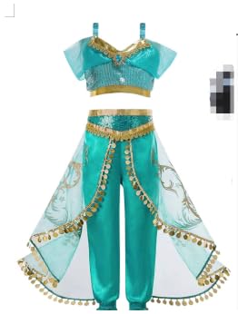 BSBUY Jasmine Princess Costume for Girls Aladdin Princess Costume, Aladdin Dress Up Fancy Dress Jasmine Costume Kids, Two Pieces Sequined Outfit for Cosplay Birthday Halloween Party Carnival(110)