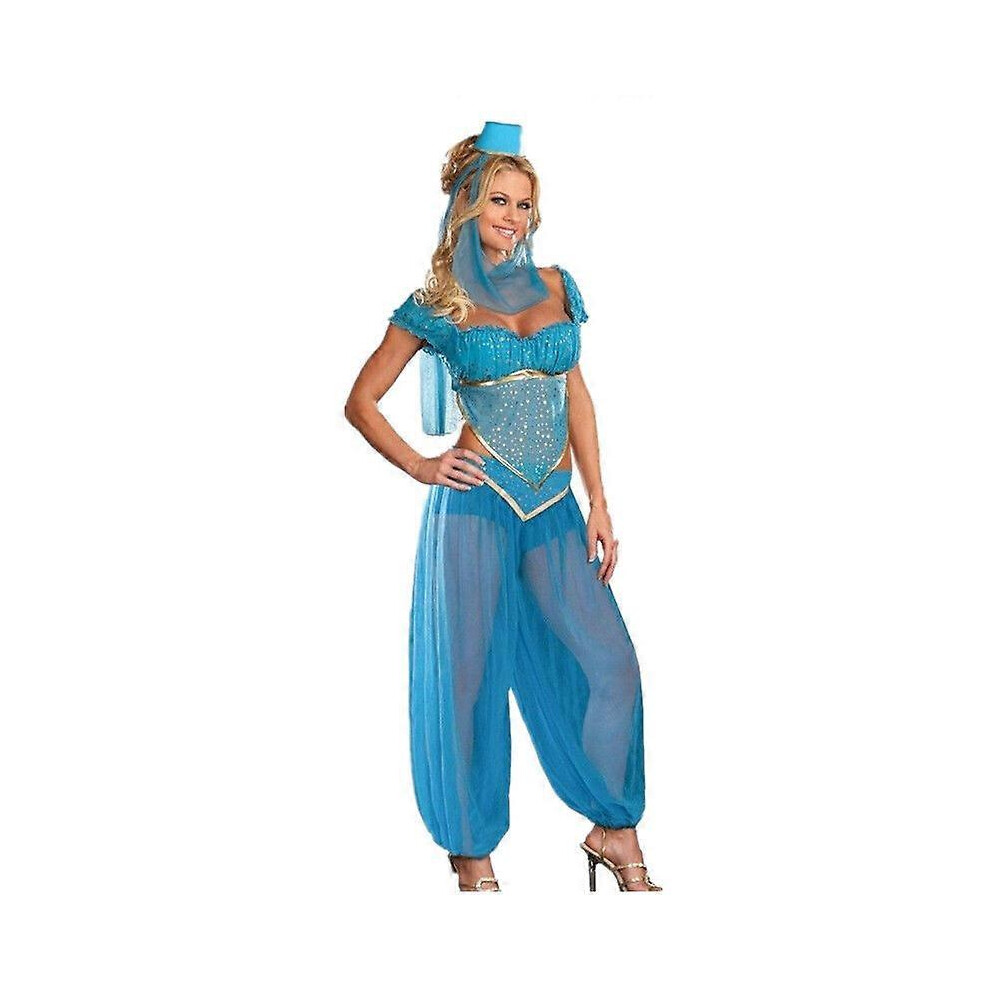 (M, Blue) Belly Dancer Dress Adult Arabic Dance Costume Jasmine GENIE Aladdin Princess Halloween Fancy Women Dress Sets