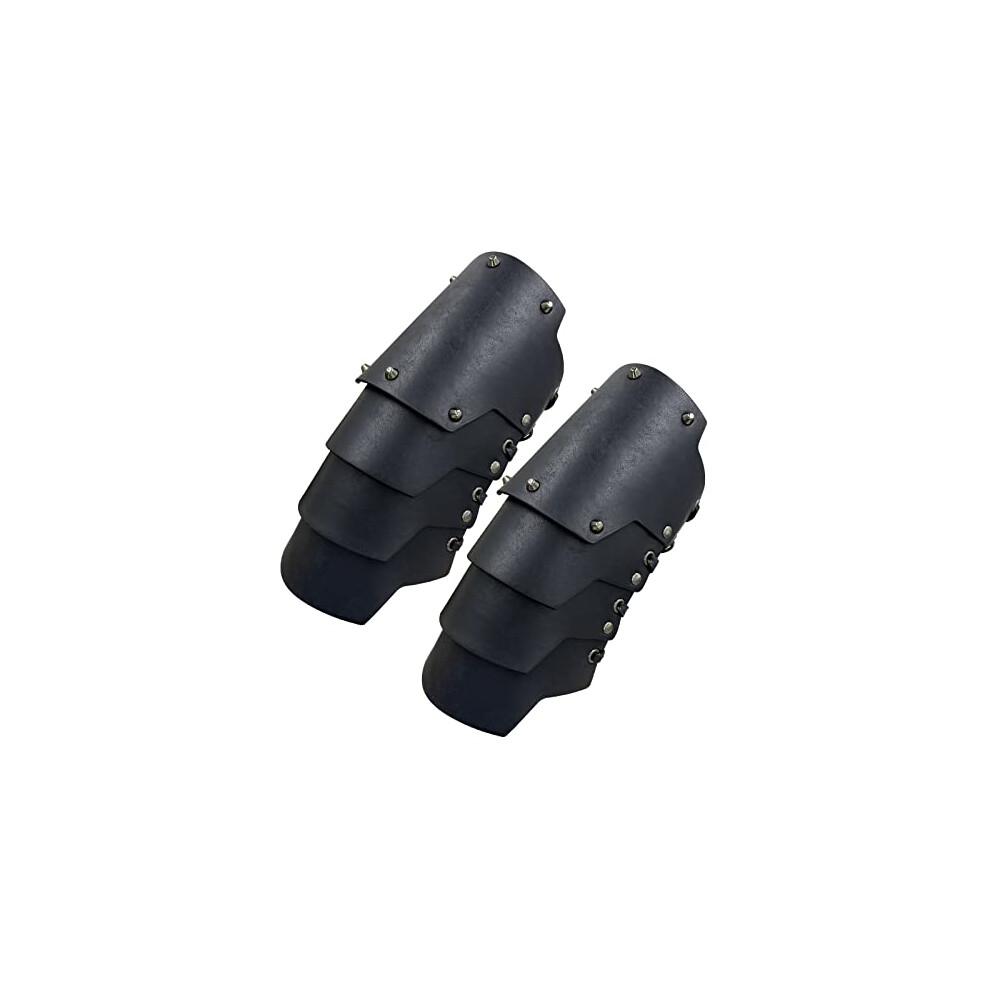 Medieval Faux Leather 4 Layers Bracers Arm Armor, Middle Ages Mercenary Gauntlets, Costume Knight Archer Arm Guards (Black A)