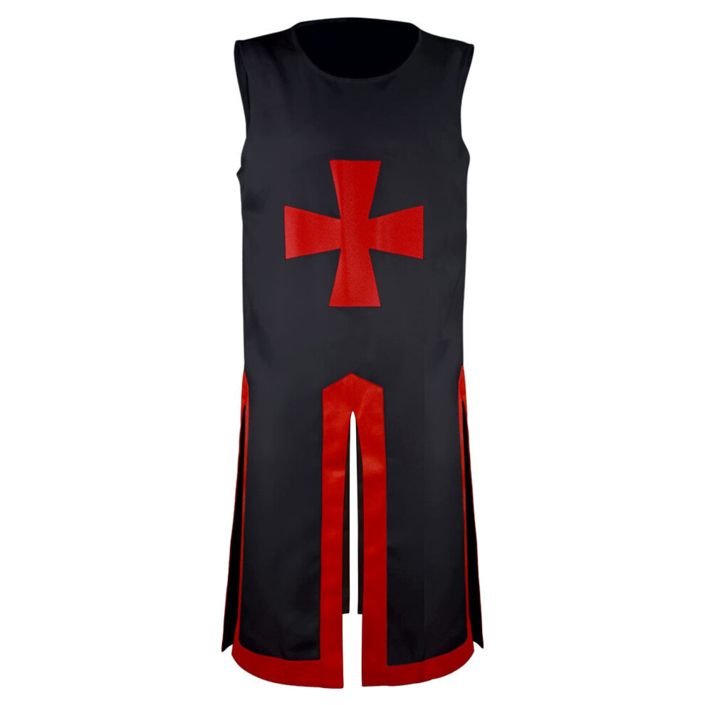 Medieval Warriors Knight Costume Templar Knight Crusader Viking Tunic Temple Carnival Halloween Outfit Cosplay Weapon Skirt Men's Cross Tabard Surcoat A S