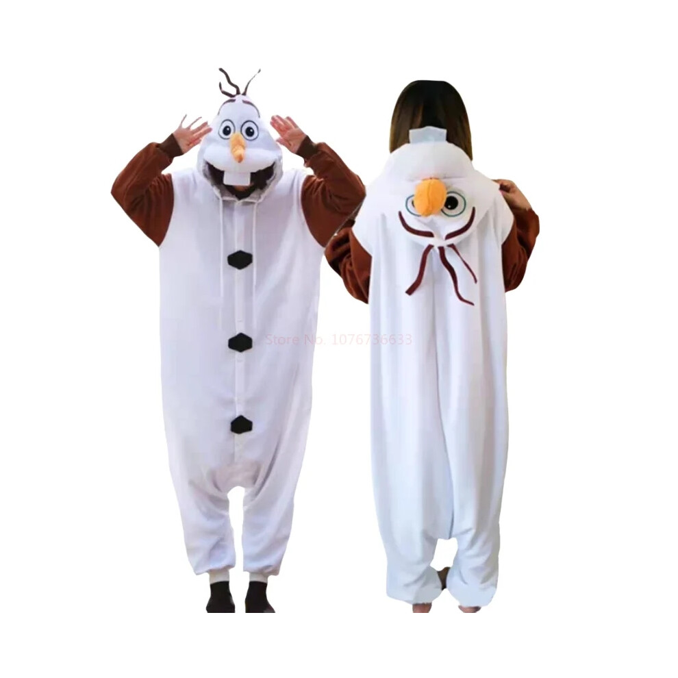(L) Frozen Olaf Snowman Cosplay Costume Anime Adult Pajamas White Jumpsuit Party Dress Fleece Cute Cartoon Sleepwear Gift
