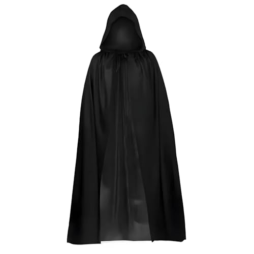 XWGKLN Black Hooded Cape 160cm, Single Layer Lightweight Cloak for Halloween Witch Vampire Voldemort Cosplay, Gothic Fancy Dress & Party Costume Adults & Teens
