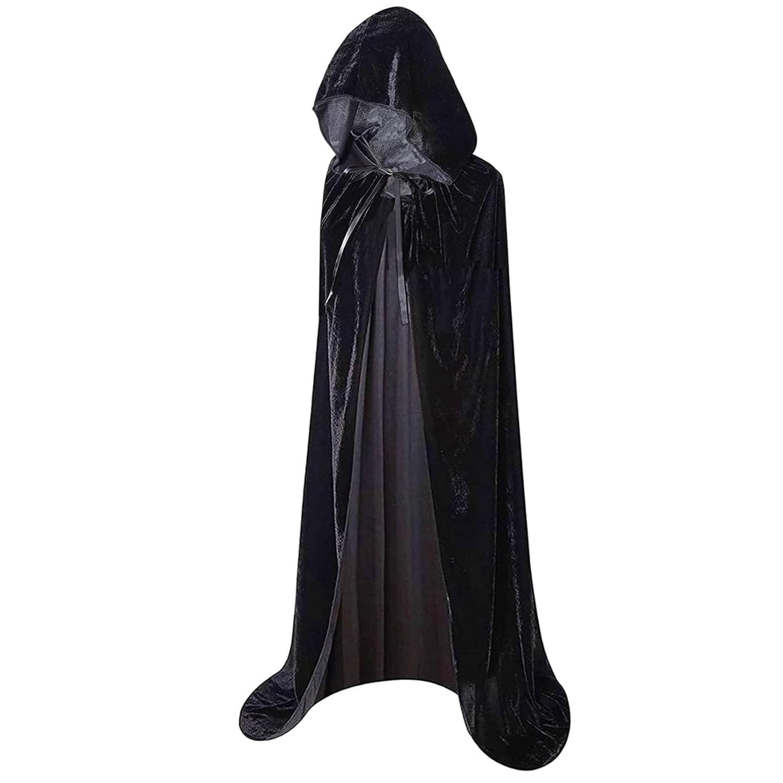 Halloween Black Hooded Cloak Cape With Mask, Halloween Medieval Cloak Harry Potter Costume Adult Voldemort Fancy Dress for Women Men Kids & Adults