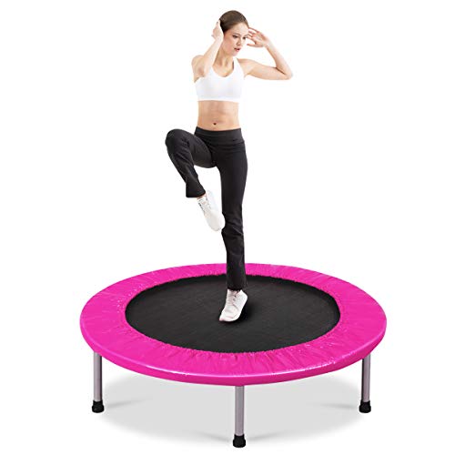 COSTWAY Mini Trampoline, 36 Inch Kids Exercise Rebounder with Foam Handrail and Safety Padded Cover, Foldable Toddler Trampolines for Indoor Outdoor (Pink)