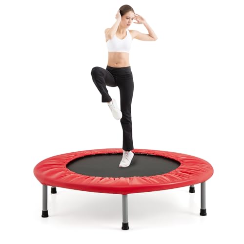 COSTWAY Mini Trampoline Set, 38" Foldable Fitness Bouncer with Padding & Springs Elastic Safe for Indoor Outdoor Exercise Workout, 150kg Weight Capacity (Red)