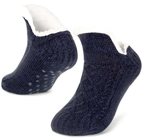 Tolumo Slipper Socks for Women Men Warm Holding Sock Non Slip Knitted Thick Lined Cosy Winter Fluffy Bed Slippers Suitable for Indoor Home House Floor JH1 Navy-2