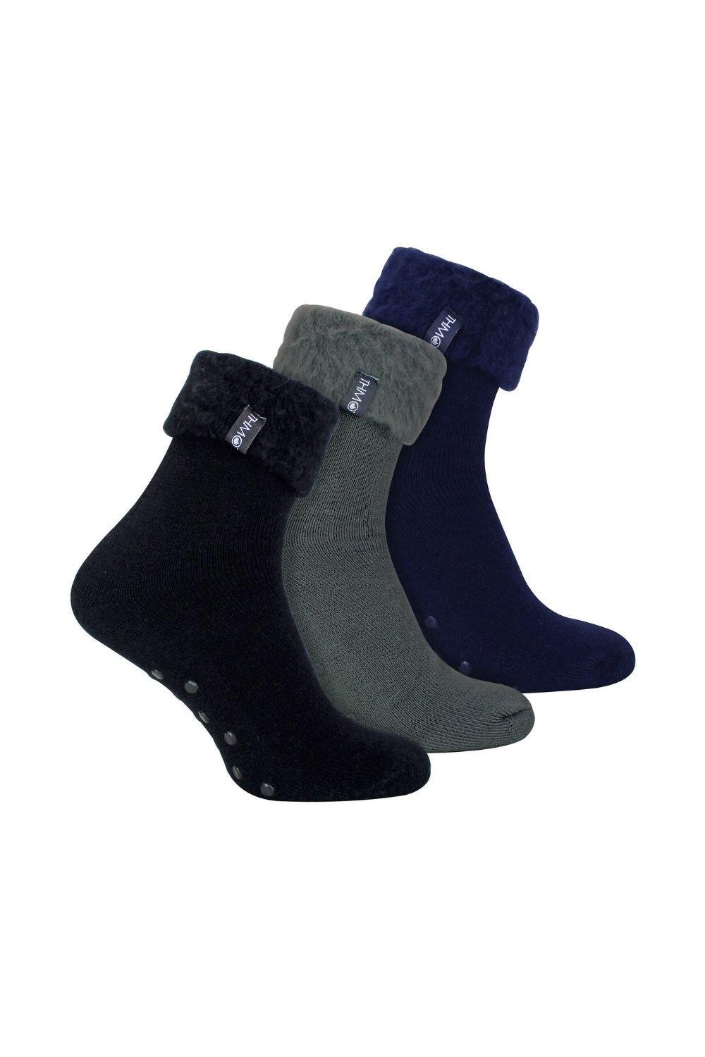 Mayoii 3 Pack Non Slip Men's Terry Slipper Socks, Bed Cosy Warm Thermal Socks for Men with Grippers, Unisex UK 6-11 for Home Sleeping (B, Adult, Men, One Size, Alpha, UK Footwear Size System, Medium)