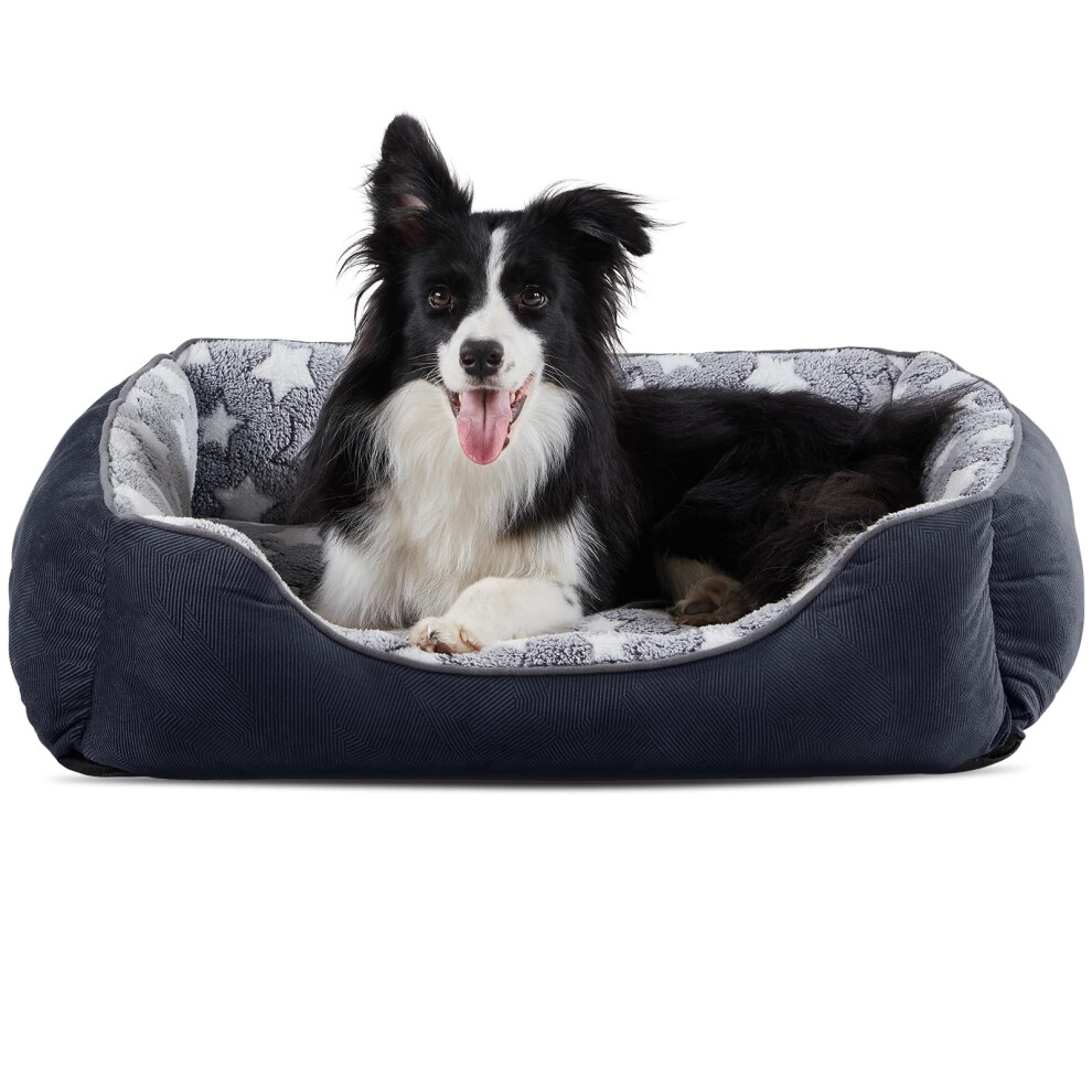 MIXJOY Large Dog Bed(76x61cm), Super Soft Cosy Rectangle Dog Beds, Grey Washable Pet Bed, Ideal for Doberman Pinscher, Sheltie, Border Collie,