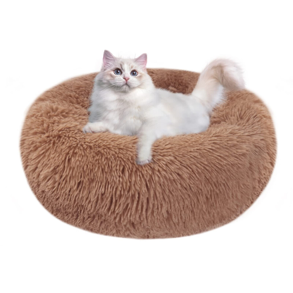 Nepfaivy Calming Dog Cat Donut Bed - 23.6in Fluffy Plush Puppy Kitten Cuddler Round Bed, Warm and Soft Pet Cosy Anti Anxiety Beds with Non-Slip Bottom