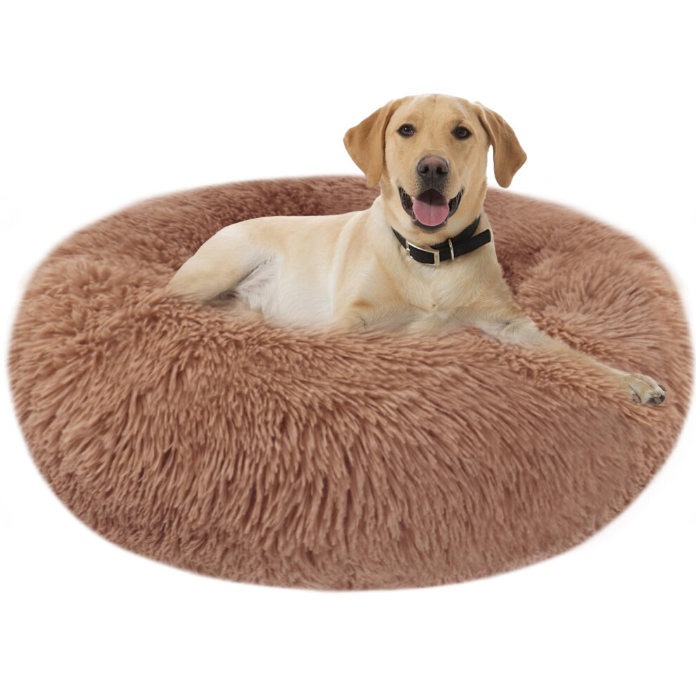 Nepfaivy Calming Dog Cat Donut Bed - 27.5in Fluffy Plush Puppy Kitten Cuddler Round Bed, Warm and Soft Pet Cosy Anti Anxiety Beds with Non-Slip Bottom