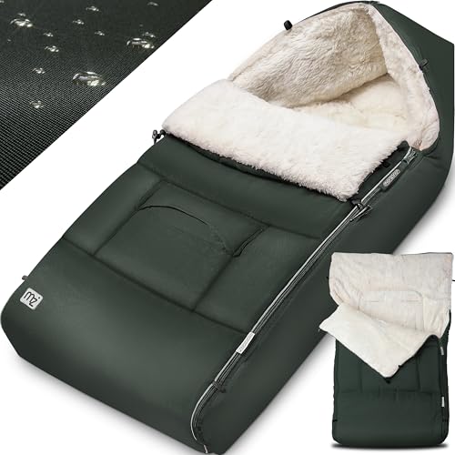 MONZANA® Baby Footmuff Cosytoes | Universal Pushchair Stroller Buggy Pram Car Seat | Converts to Changing Mat | Fleece Lined | Winter Warmth | Water-Resistant | Windproof | Green/Grey