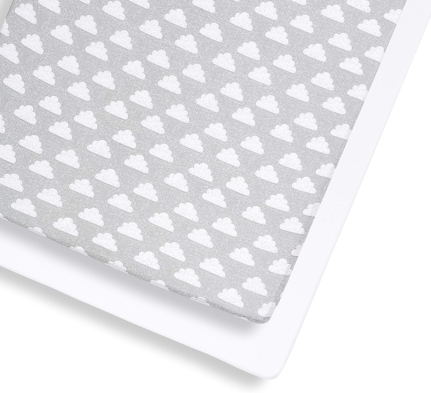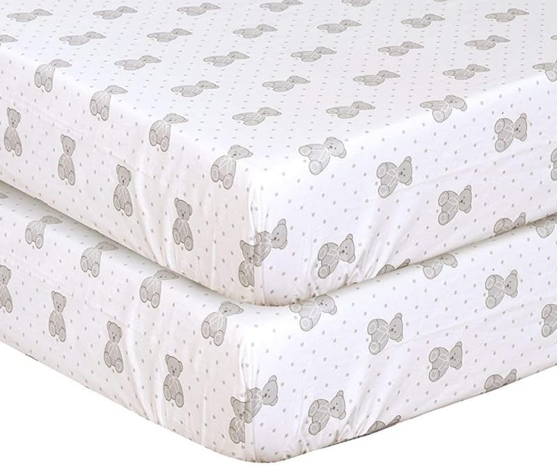 Cot Bed Fitted Sheets(140x70cm) 2 Pack, 100% Cotton Jersey Sheets for Standard Cot Mattress, Ultra Soft and Breathable Toddler & Baby Bed Sheets, White & Grey Print