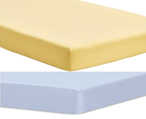 Dudu N Girlie Cot Bed Cotton Fitted Sheets | 120x60 cot mattress fitted sheet | Jersey Soft Besheet Hypoallergenic Elasticated Breathable Fitted Cot Sheets (Pack of 2, Blue & Yellow)